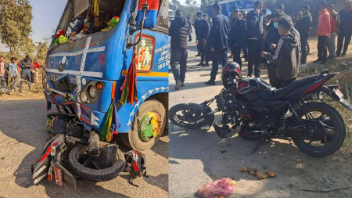 बसको ठक्करबाट मोटरसाइकलमा सवार दुई जना घाइते
